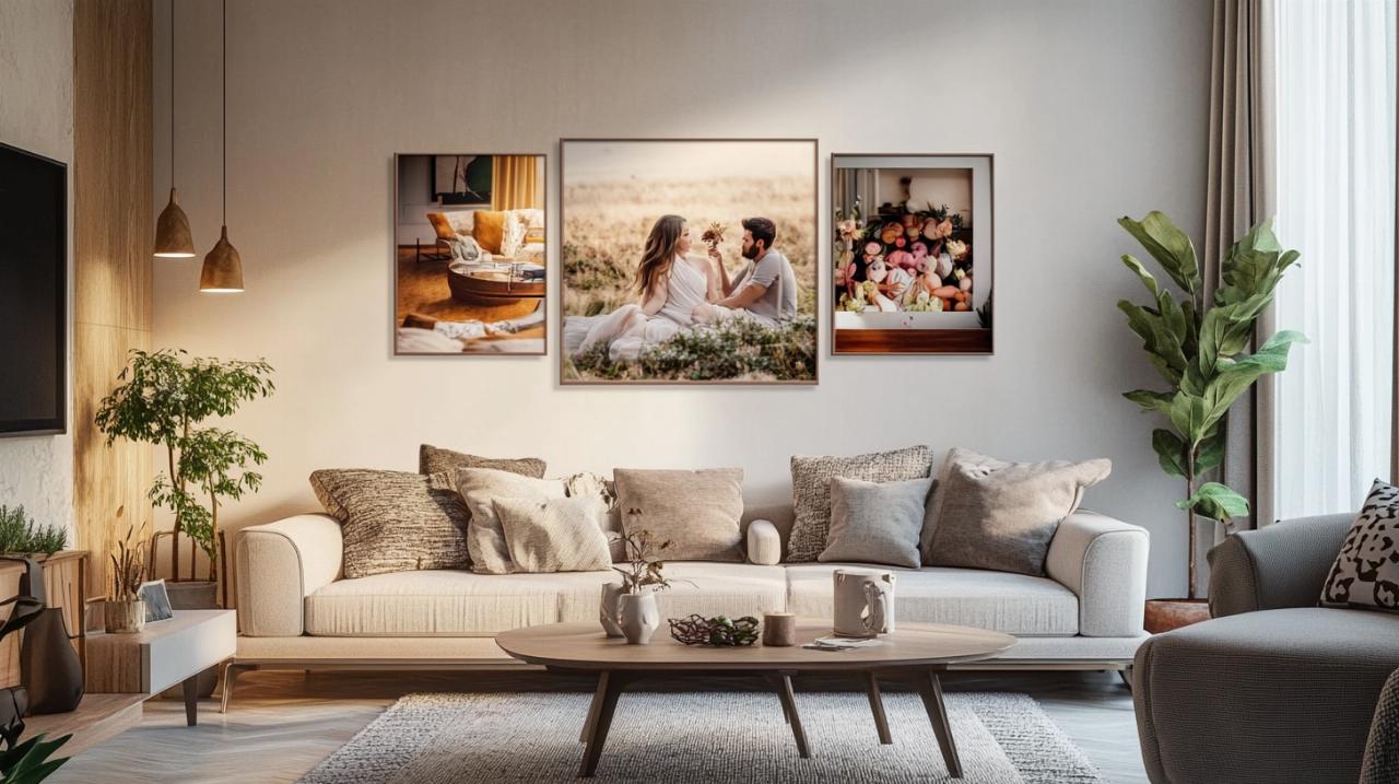 Pour créer une décoration murale impactante, l’utilisation d’un poster photo sur mesure comme pièce centrale constitue une excellente approche. Cette technique permet de structurer l’ensemble de la composition autour d’une image forte, qui attire immédiatement le regard et donne du sens à l’agencement global. Autour de ce point focal, on peut disposer des photographies de formats variés, des polaroids ou même des tirages rétro pour créer un dialogue visuel harmonieux.